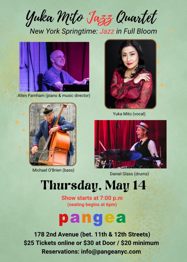 Musicians: v-Yuka Mito, Allen Farnham/piano and music director, Chris Berger/bass, Andy Watson/drums